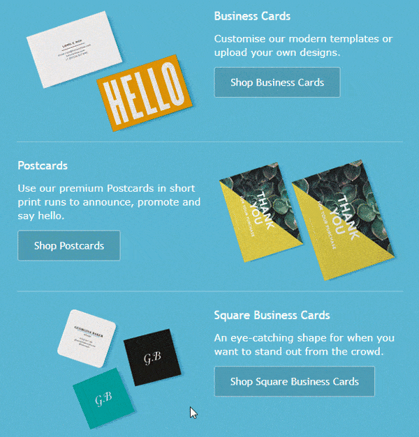 - Animerade knappar och CTA’s (call-to-action) i ditt mail