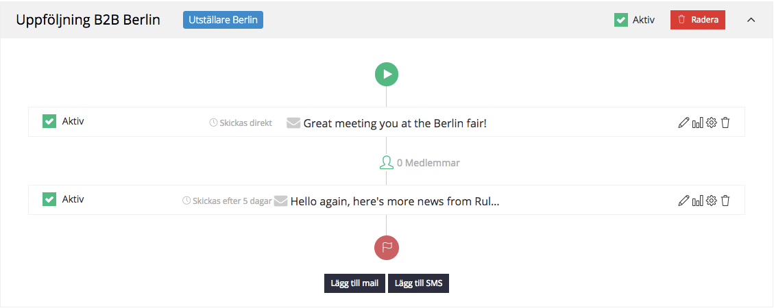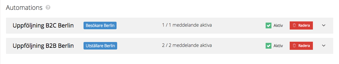 För mer detaljer om automation och arbetet med SMS se vår FAQ eller sök via frågetecknet i nedre högra hörnet när du är inloggad.