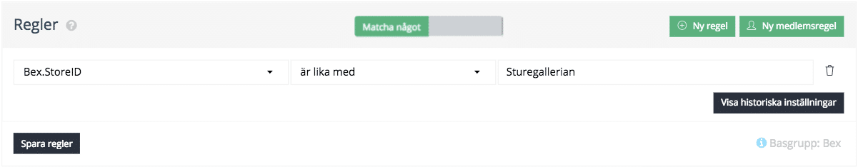 • Notera att redan registrerade kunder kläs på med ny data/information som anges. Rule känner igen om det är ett redan registrerat mobilnummer och lägger sedan till övrig information på kunden som exempelvis butiksnamn m.m. På så sätt adderas ny kunddata smidigt till tidigare information som finns på kunden och man kan då ha färdigställda automatiska flöden skapade som i exemplet ovan som skickas ut på angiven tidpunkt när kunden matchar önskade kriterier.